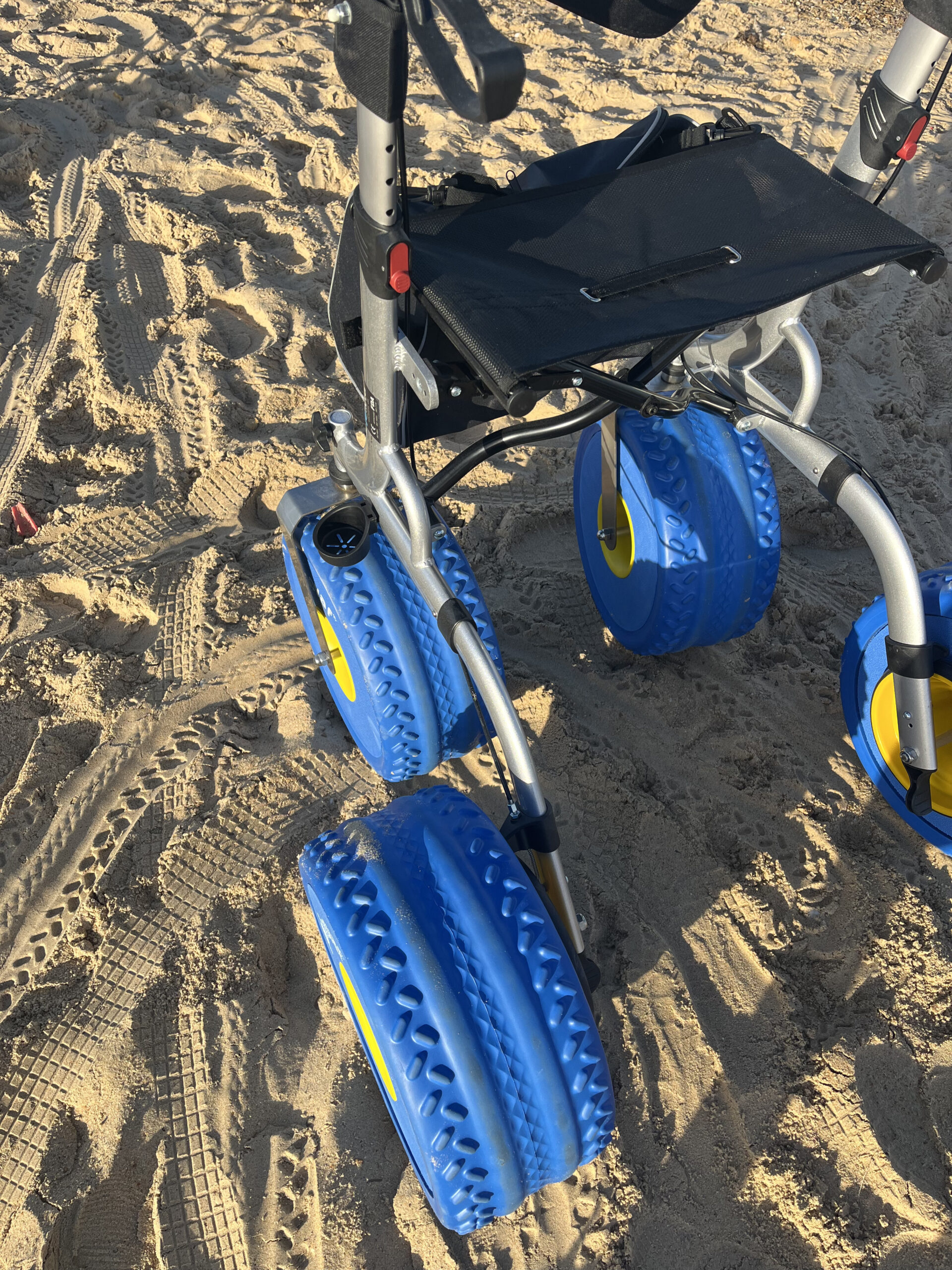 El Andador con ruedas para la playa “BEACH XL” es cómodo, seguro y muy manejable en zonas con terrenos difíciles.