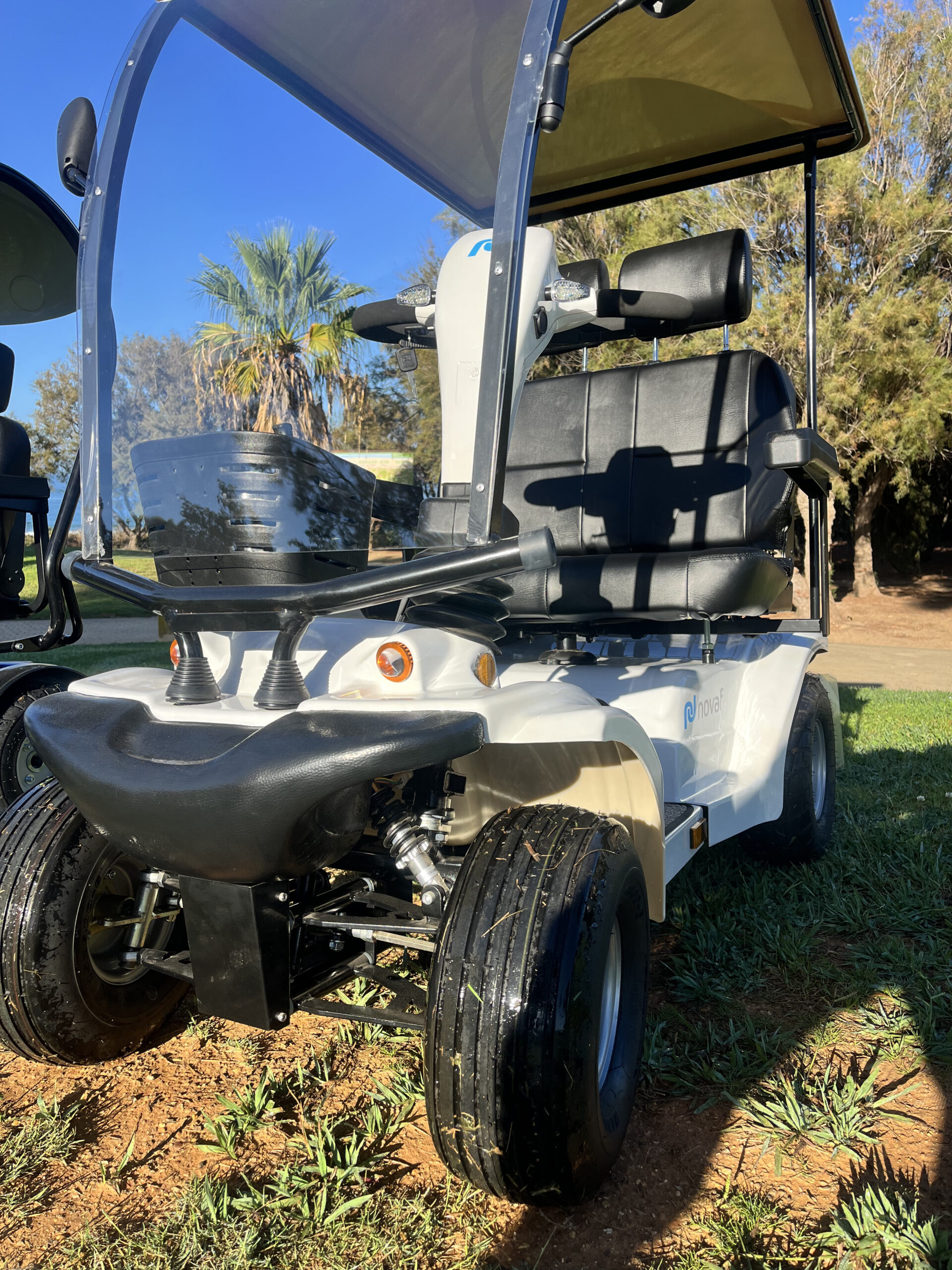 Gracias a su suspensión delantera y trasera y a las ruedas neumáticas de 14” y 16”, garantiza una conducción suave incluso sobre superficies irregulares, con una distancia al suelo de 15 cm que mejora la accesibilidad y la capacidad de superar obstáculos.